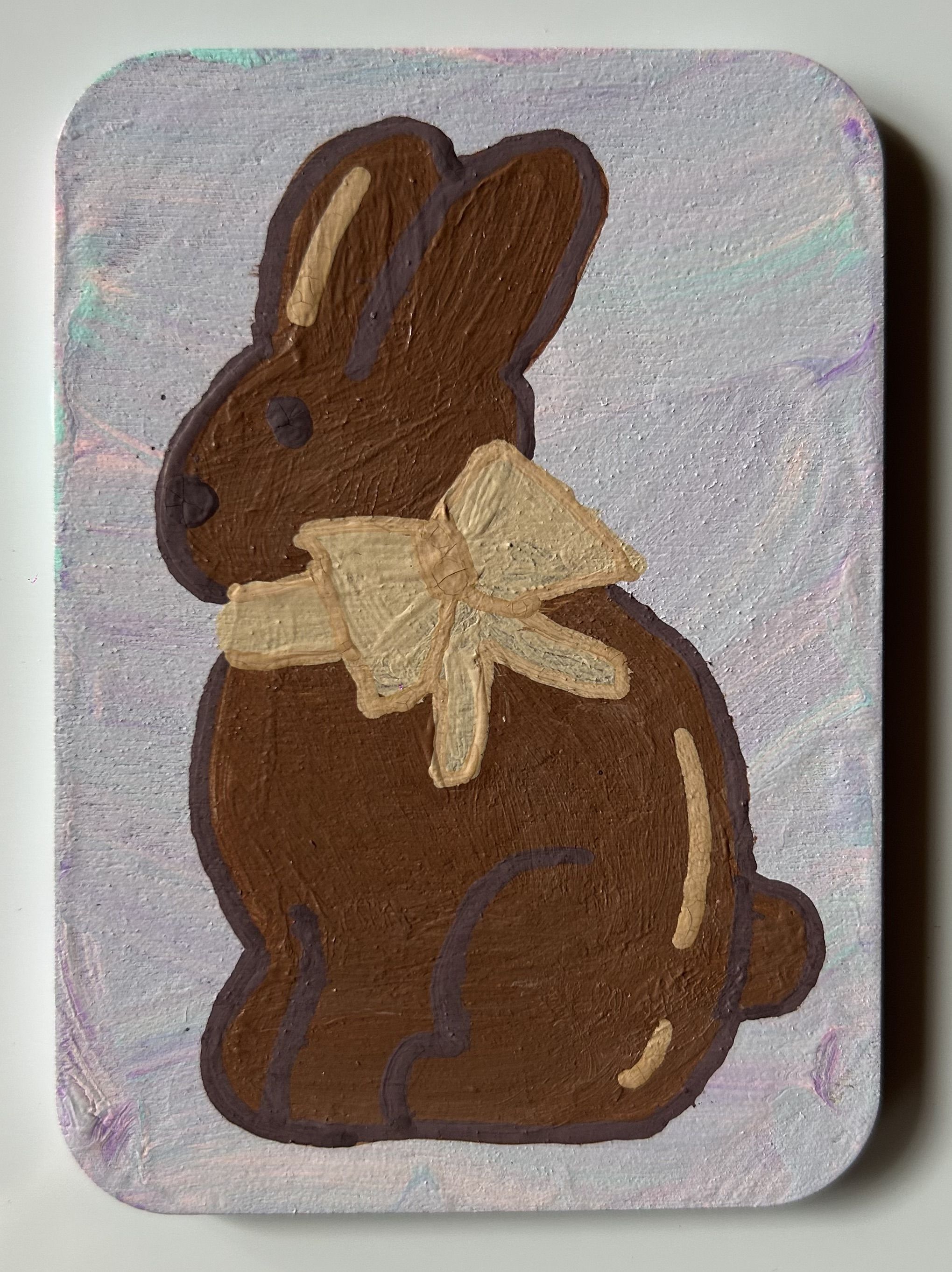 And here’s my hand painted designs: some fun bright Easter eggs, some tulips in grass, and a chocolate bunny that looks good enough to eat!