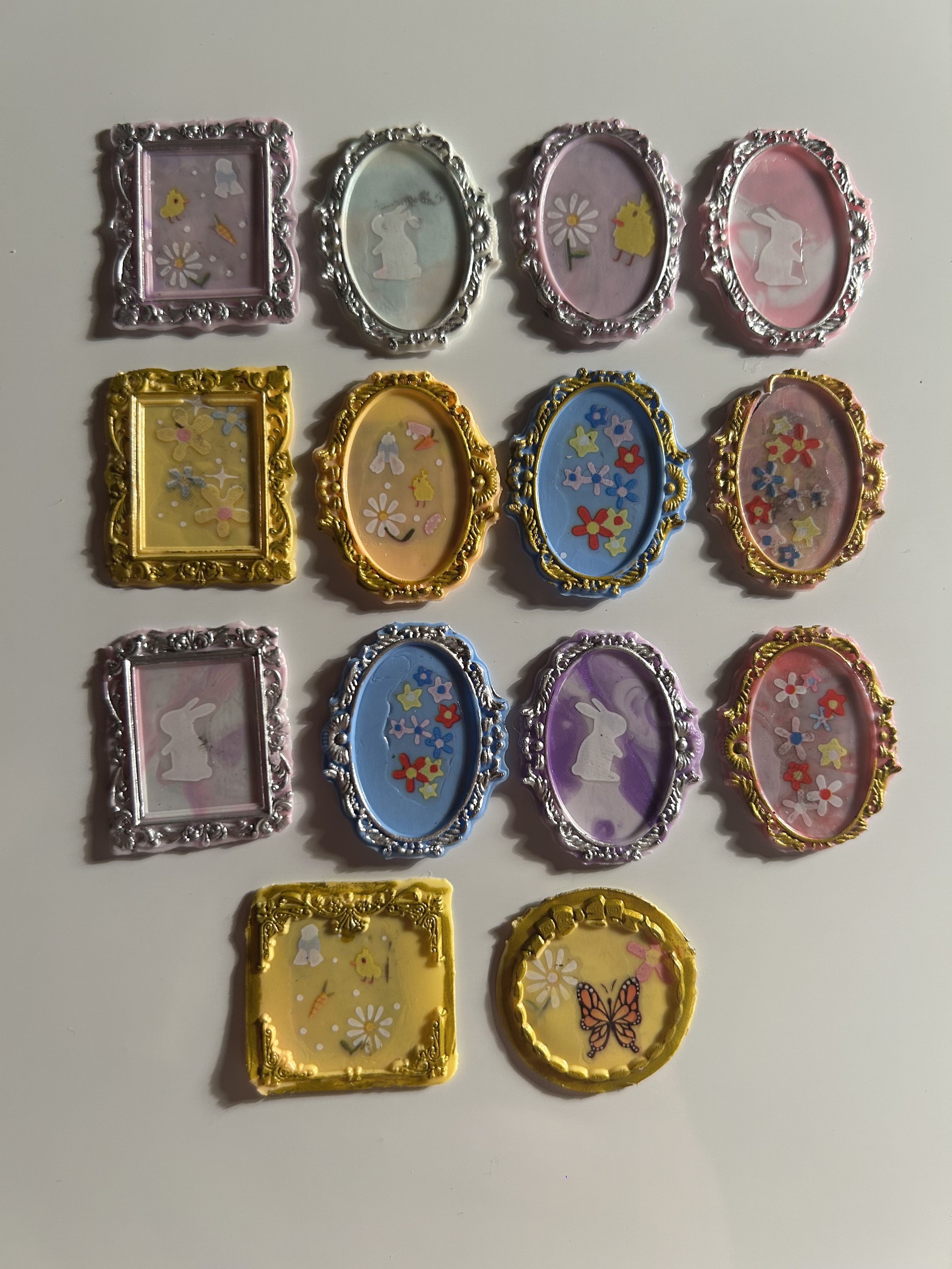 Hope you all have a wonderful Easter! When I was a kid, it was one of my favorites. Hunting for eggs with my brothers was always so much fun and the Easter basket full of candy and trinkets at the end was the icing on the cake. Mom and Dad always put so much thought into it, and made it special for us. Now, being 40 and kid-less, I haven’t experienced that kind of Holiday fun in a long time. So making these Holiday themed magnets has been bringing me joy in a new and different kind of way.