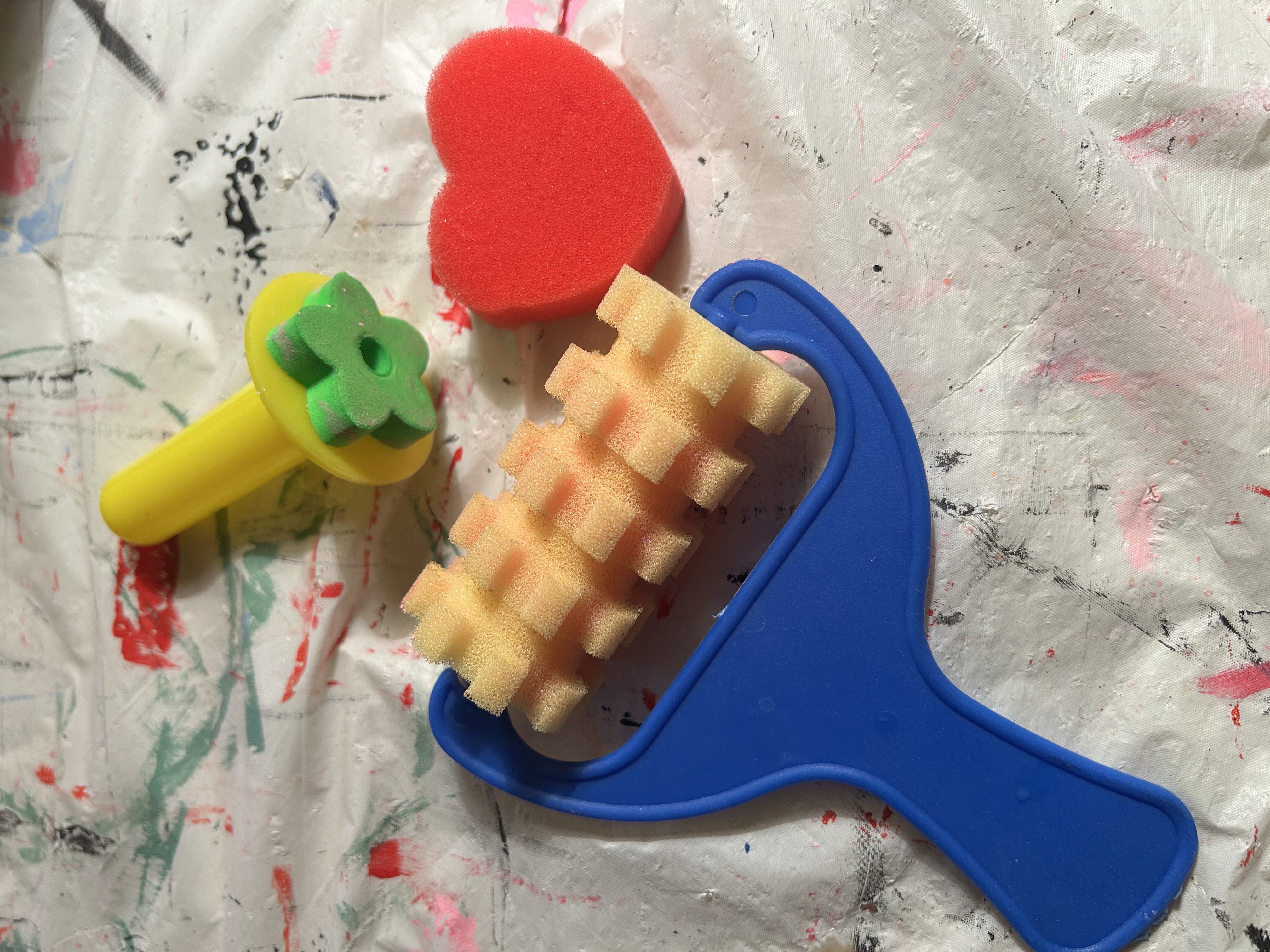 Here’s where I got crazy with it. I bought a kids crafting tool set off of Amazon which included some textured paint rollers, sponges of all different shapes, and some stampers. What I pictured the turn out in my head would be is not anywhere NEAR how they turned out. I think I put too much paint on the rollers, which caused it to become gloppy and not give the negative space effect I was going for. I wanted clean checkerboard, but got semi checkered mess instead. But I just went with it anyway, and honestly don’t think they’re half bad now!