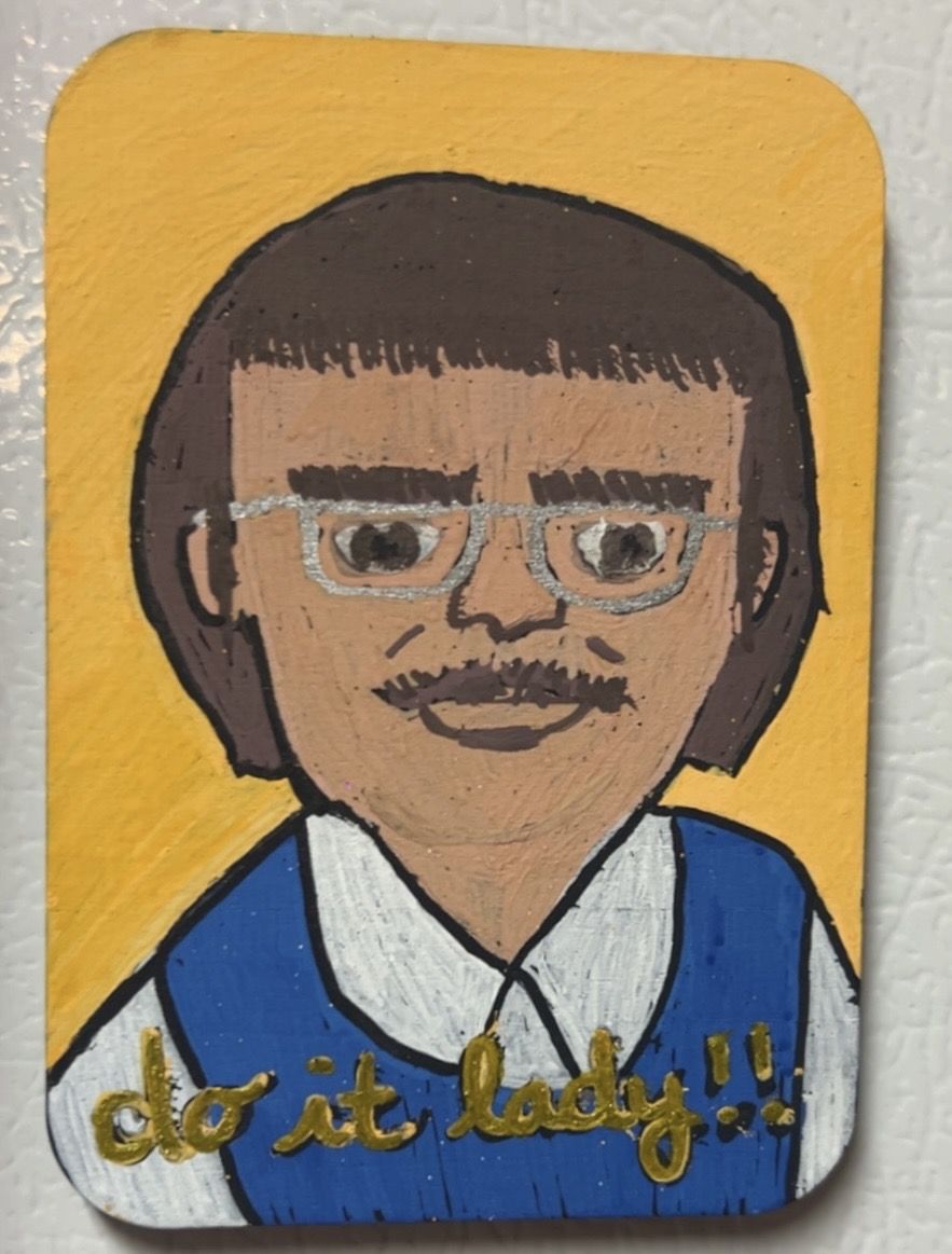 I would also like to share a magnet I made for one of my dear friends, Ali. Earlier this year she showed us a skit on youtube <insert link here – https://youtu.be/miE07JBZO6Q?si=Gsid3fXs64MzO9_- > and it made me/us laugh so hard that I never forgot about it. I knew for part of her Christmas present this year, I needed to create some magnet magic, so I created Chit! This one I could probably never sell due to licensing issues, but I still think it made a lovely gift. Here is the finished product and the reference picture I used. She loved it!!!
